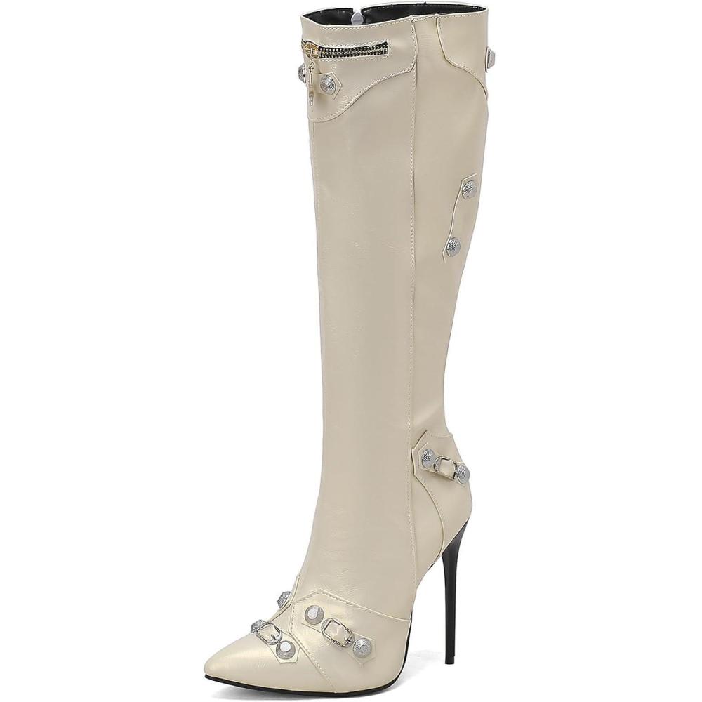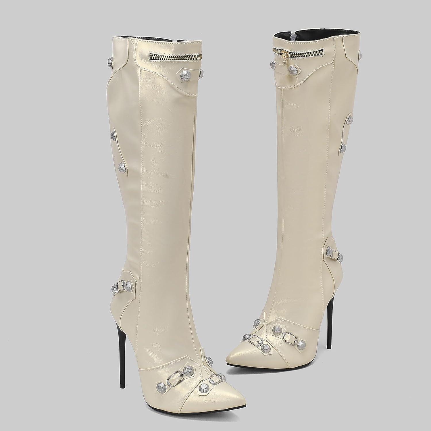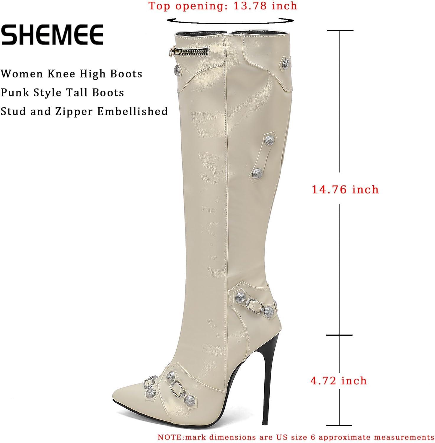 Be the first to review “SHEMEE Knee High Boots Sexy Pointy Toe Stiletto High Heels Studded Punk Tall Boot Party Dressy Stripper Heels for Women(Beige)” Cancel reply