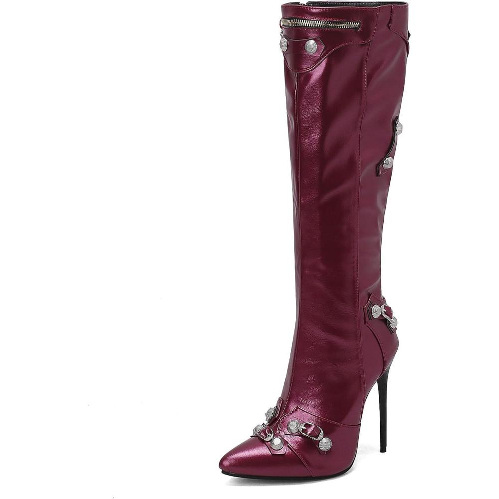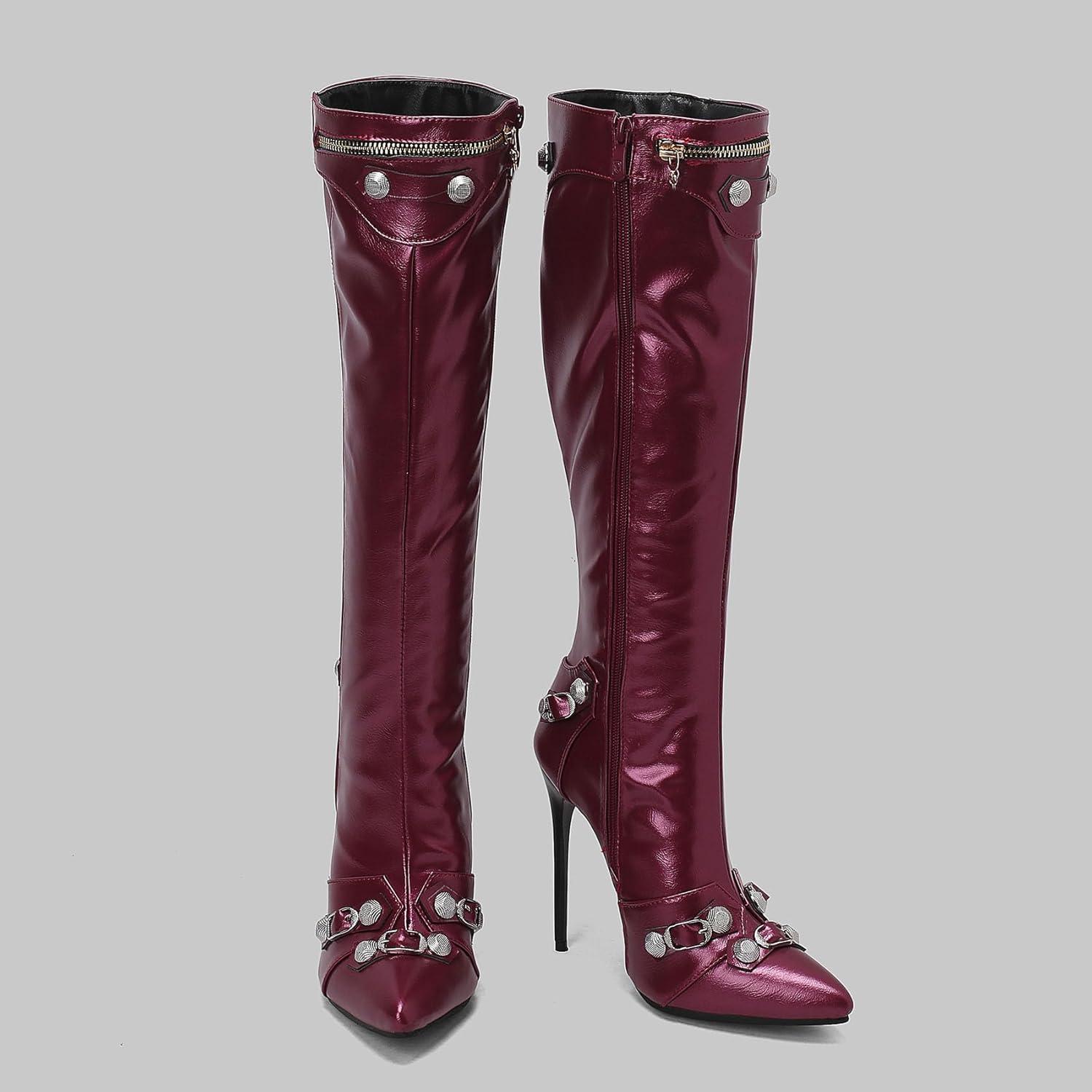 Be the first to review “SHEMEE Knee High Boots Sexy Pointy Toe Stiletto High Heels Studded Punk Tall Boot Party Dressy Stripper Heels for Women(Burgundy)” Cancel reply