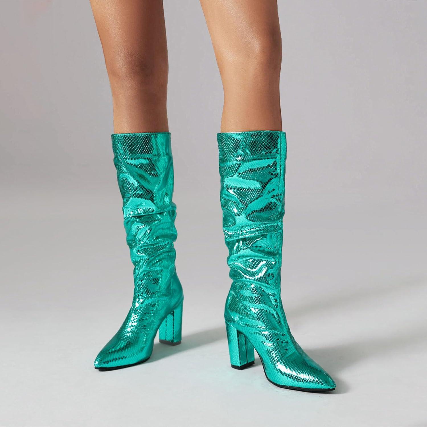 Be the first to review “SHEMEE Sparkly Mid Calf Slouch Boots Sequins Chunky High Heels Boots Pointed Toe Block Heeled Disco Boots For Saloon Girl Ladies(Green)” Cancel reply