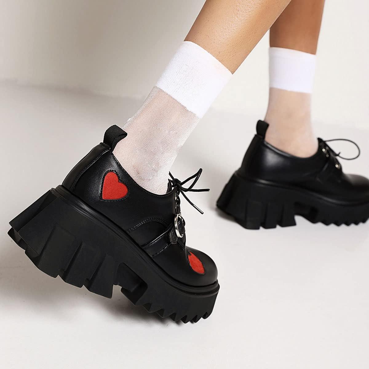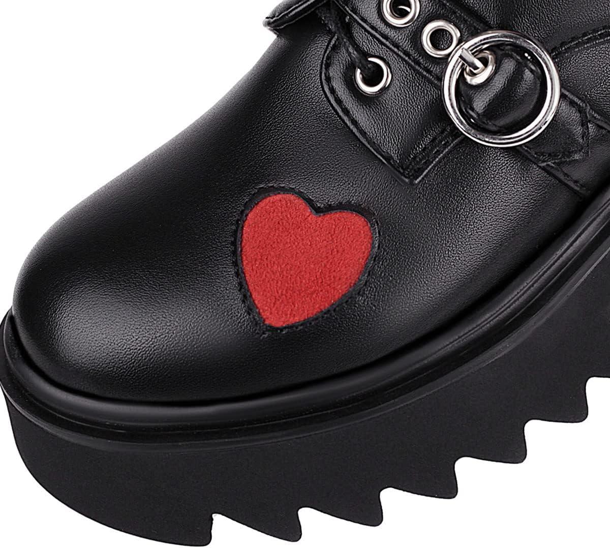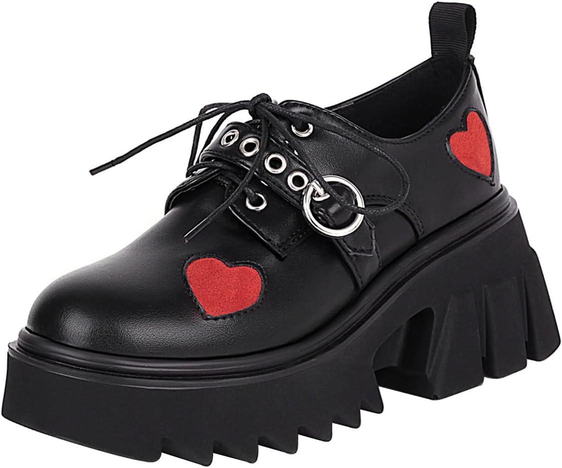 Women's Buckle Gothic Platform Chunky Heeled Pumps Lace Up Round Toe Block High Heels Punk Dress Shoes