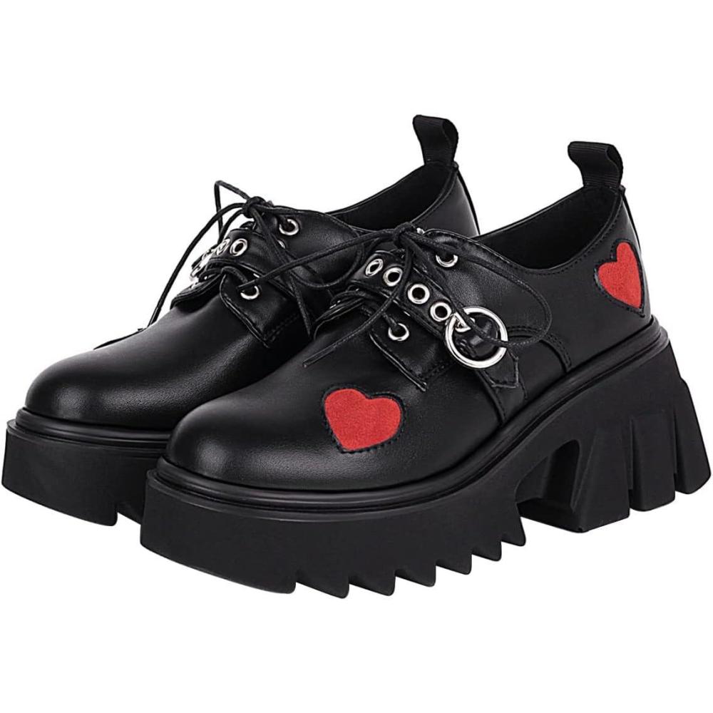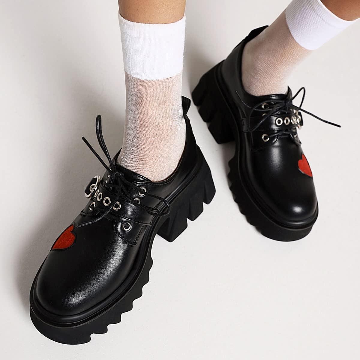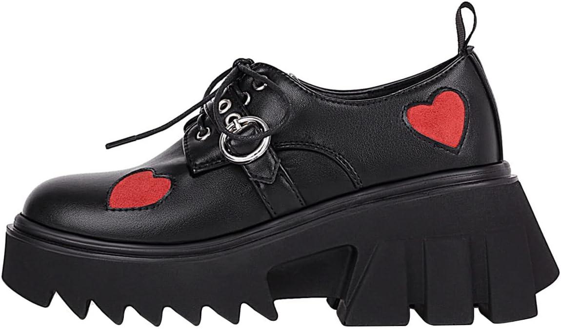 Women's Buckle Gothic Platform Chunky Heeled Pumps Lace Up Round Toe Block High Heels Punk Dress Shoes