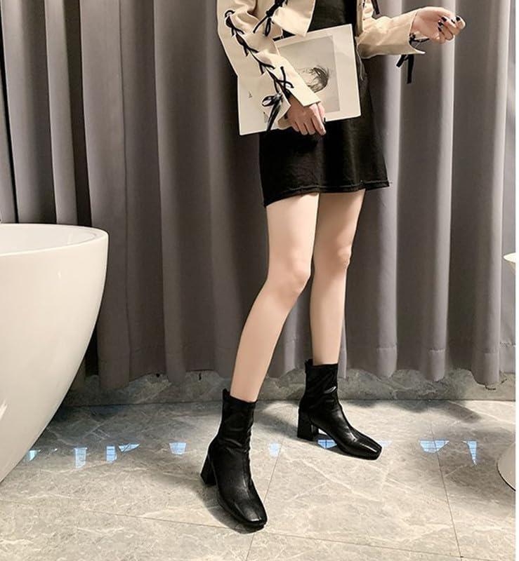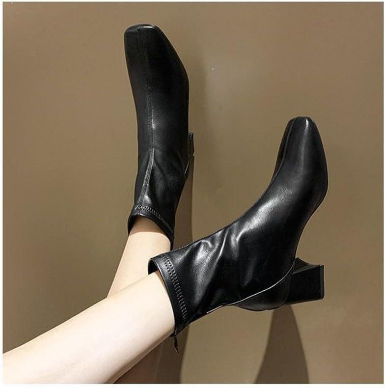 SHEMEE Women's Chunky Block Heels Ankle Boots Fashion GOGO Boots Round Square Toe Zip Up Booties High Heeled Dress Shoes(Black 01)
