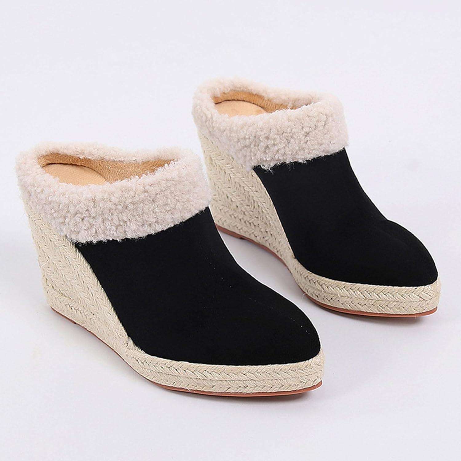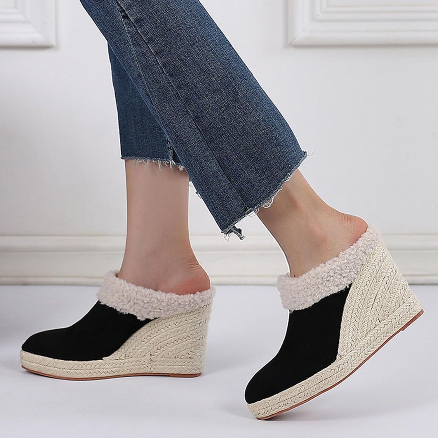 Perfect sturdy and edgy platform wedge heel design that can keep comfortable. Fashion furry espadreilles mule sandals ladies platform heel slides fall winter warm shoes which highlights your elegant,confidence,cute,beauty and sophisticated look.