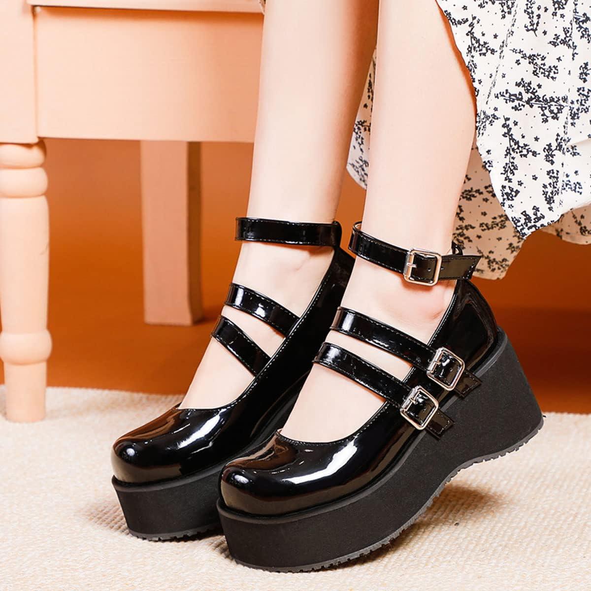 Be the first to review “SHEMEE Women’s Gothic Lolita Mary Jane Shoes Wedge Platform High Heel Patent Leather Buckle Ankle Strap Cosplay Pumps(Black)” Cancel reply
