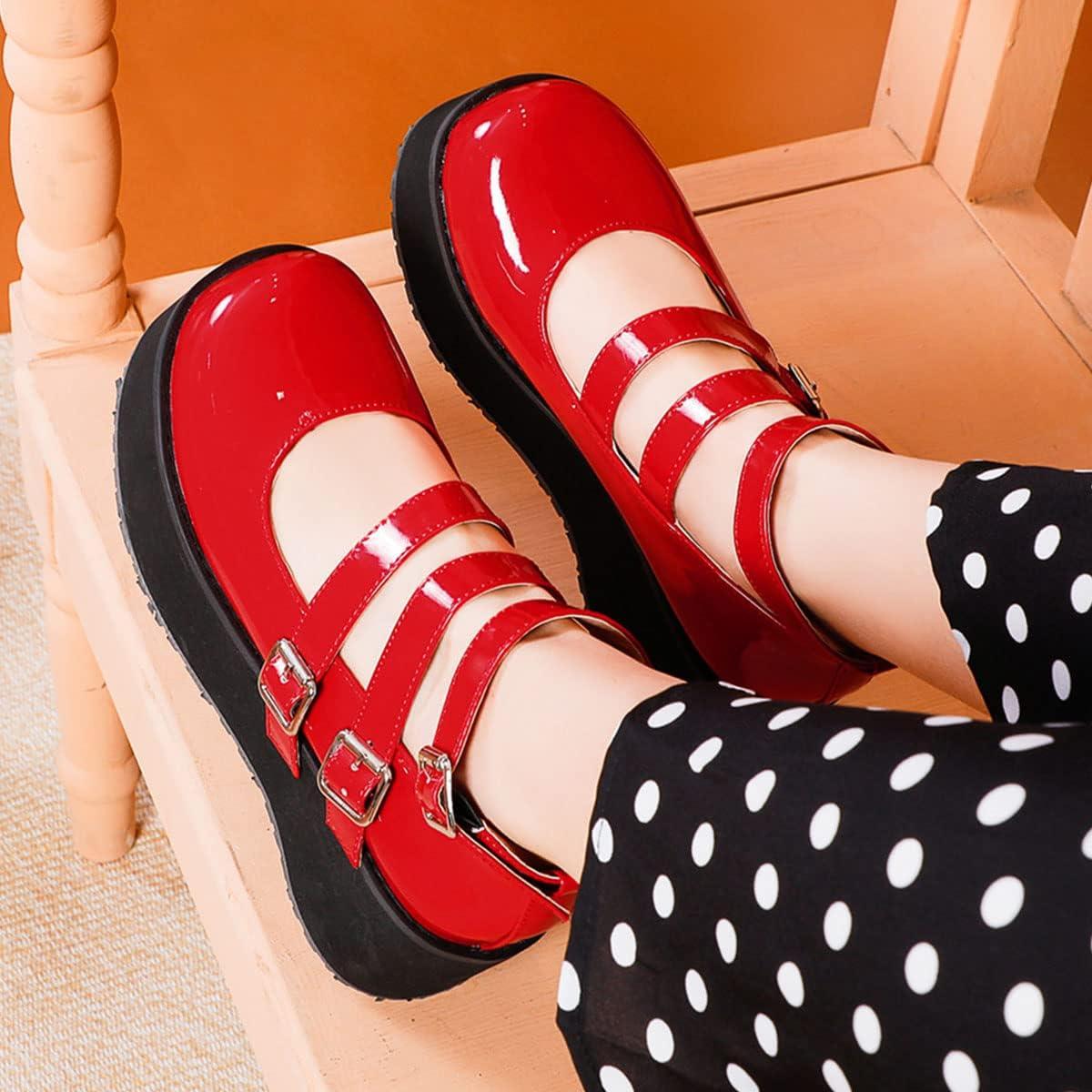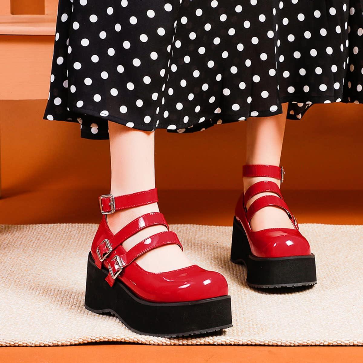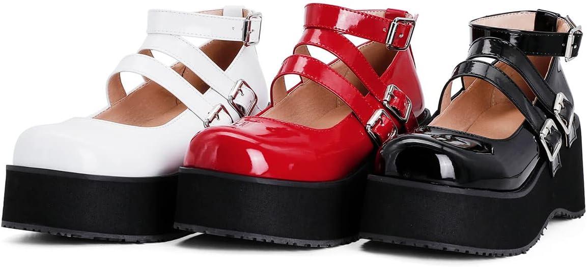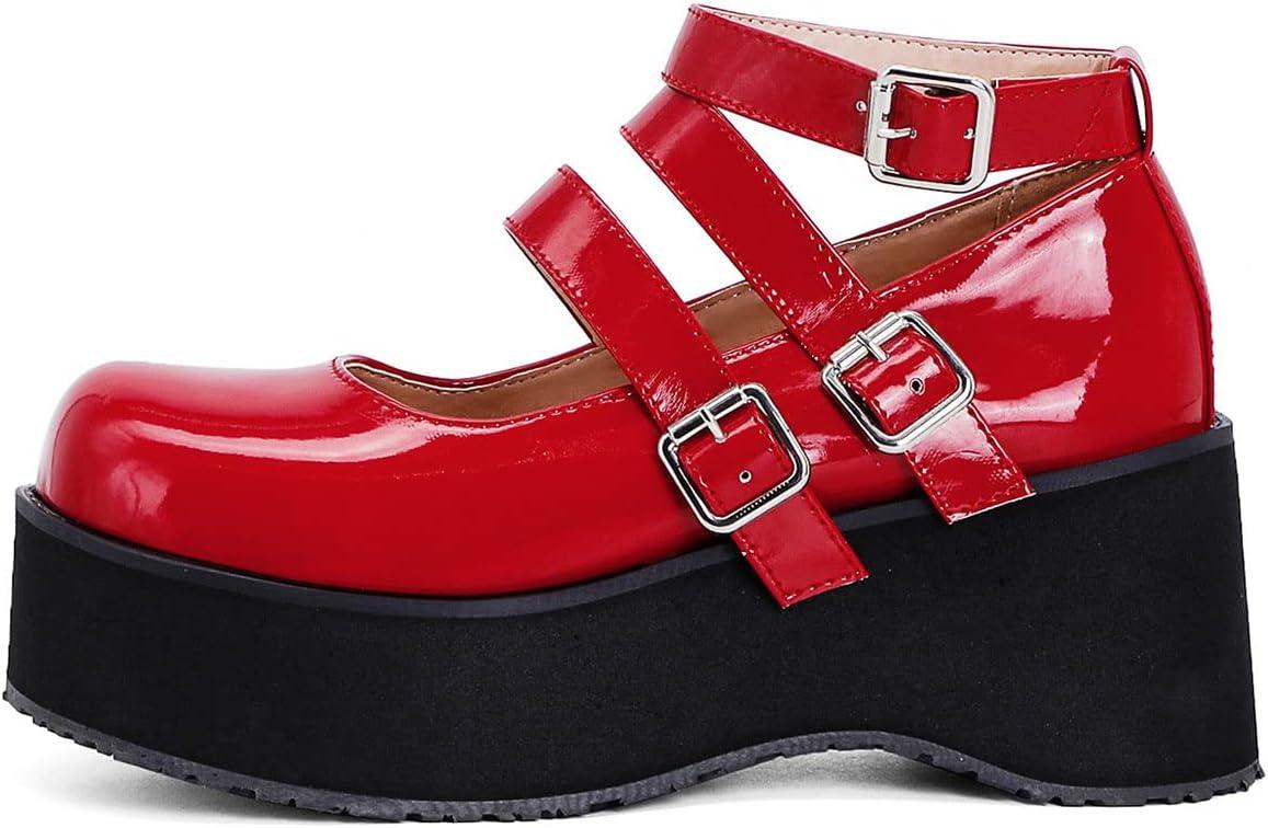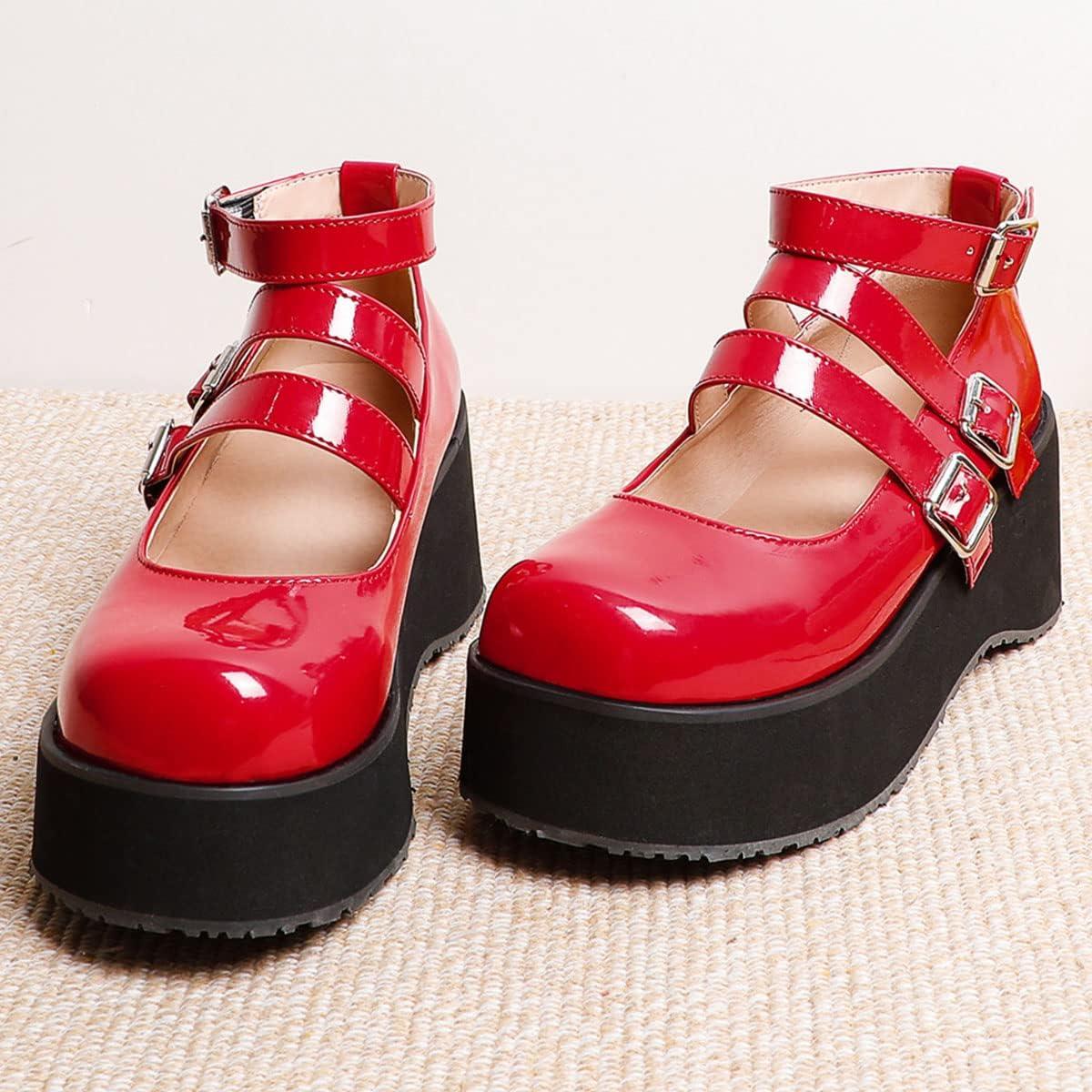 Get a free gift with your purchase of SHEMEE Women’s Gothic Lolita Mary Jane Shoes Wedge Platform High Heel Patent Leather Buckle Ankle Strap Cosplay Pumps(Red). Limited quantities available!
