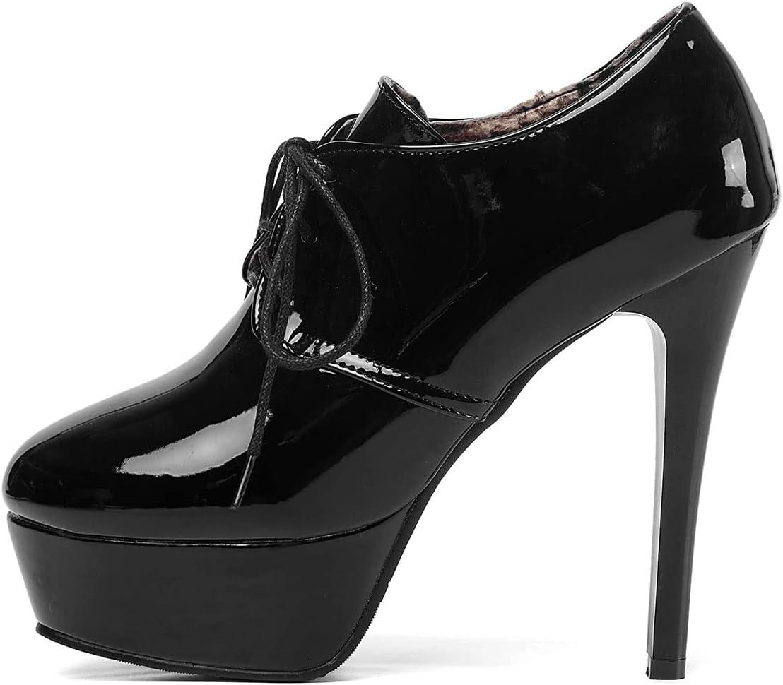 Womens Lace-up Stiletto High Heel Ankle Boots Patent Leather Thin Heels Pumps Platform Booties Shoes