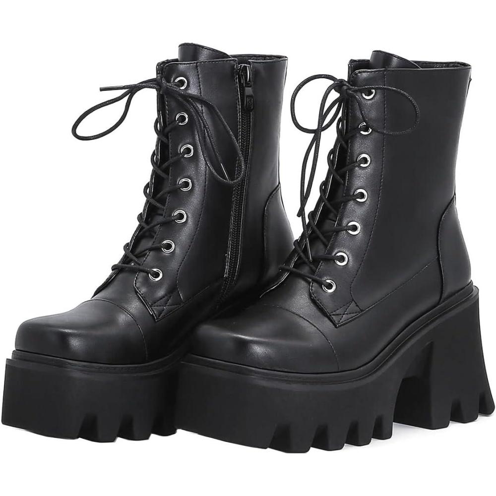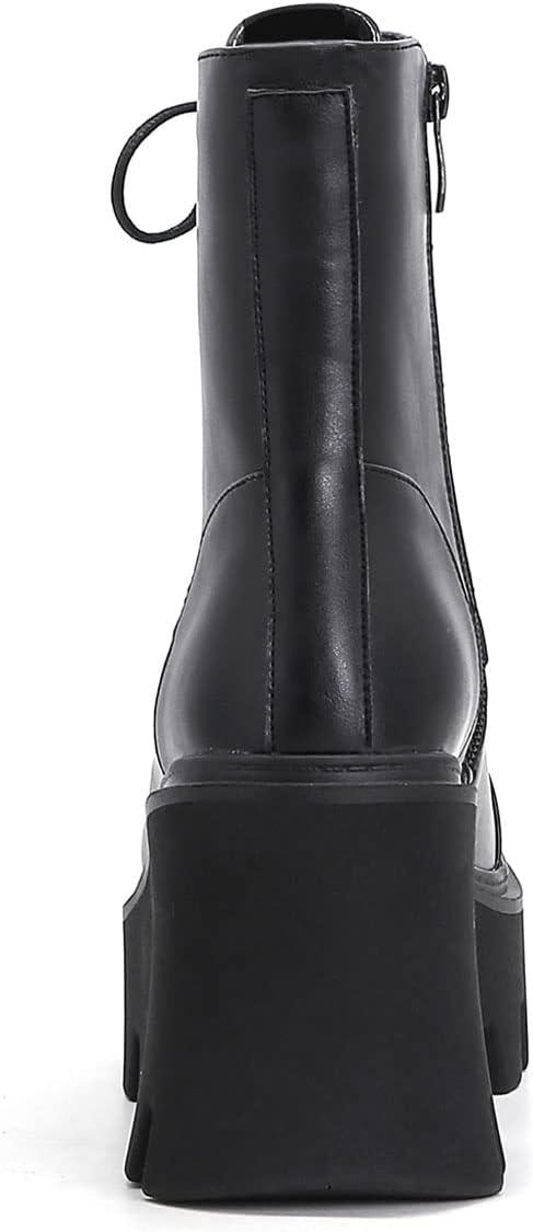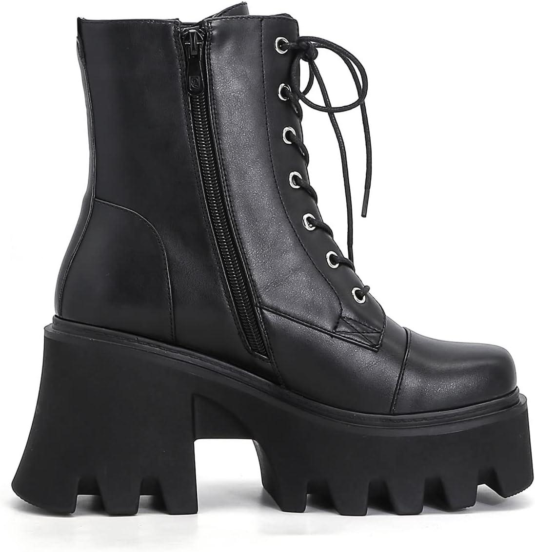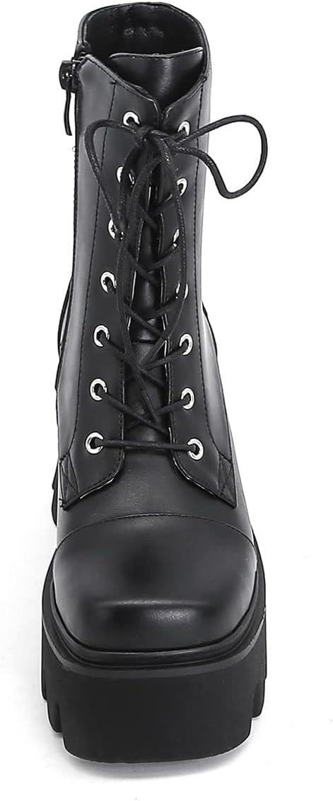 Women's Platform Chunky Ankle Boots Round Toe Lace Up Block High Heels Combat Booties Gothic Shoes