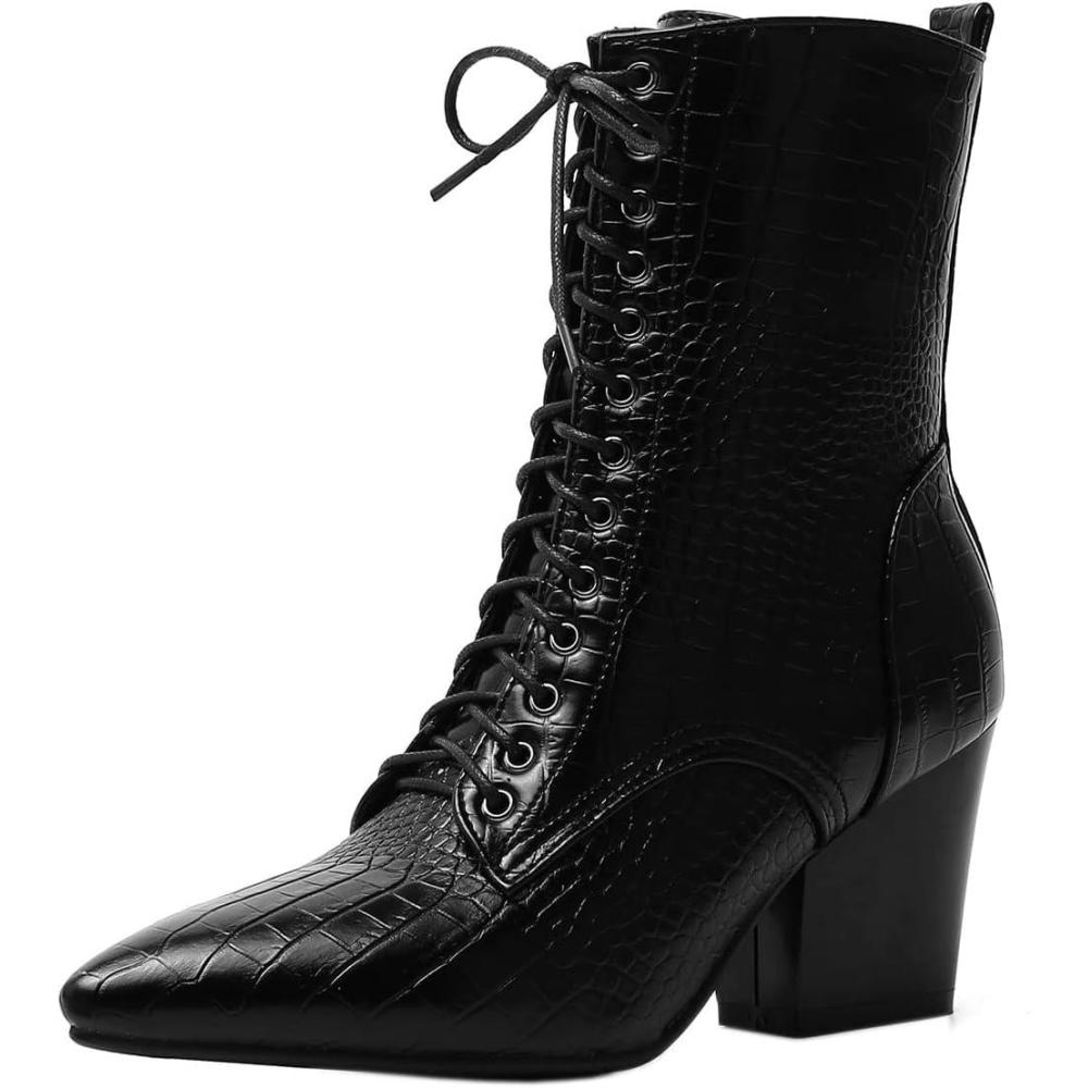 Be the first to review “SHEMEE Women’s Pointed Toe Chunky High Heels Booties Lace Up Block Heel Ankle Boots with Side Zipper(Black)”
