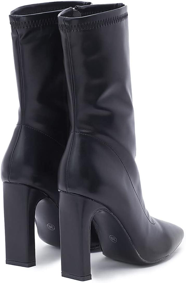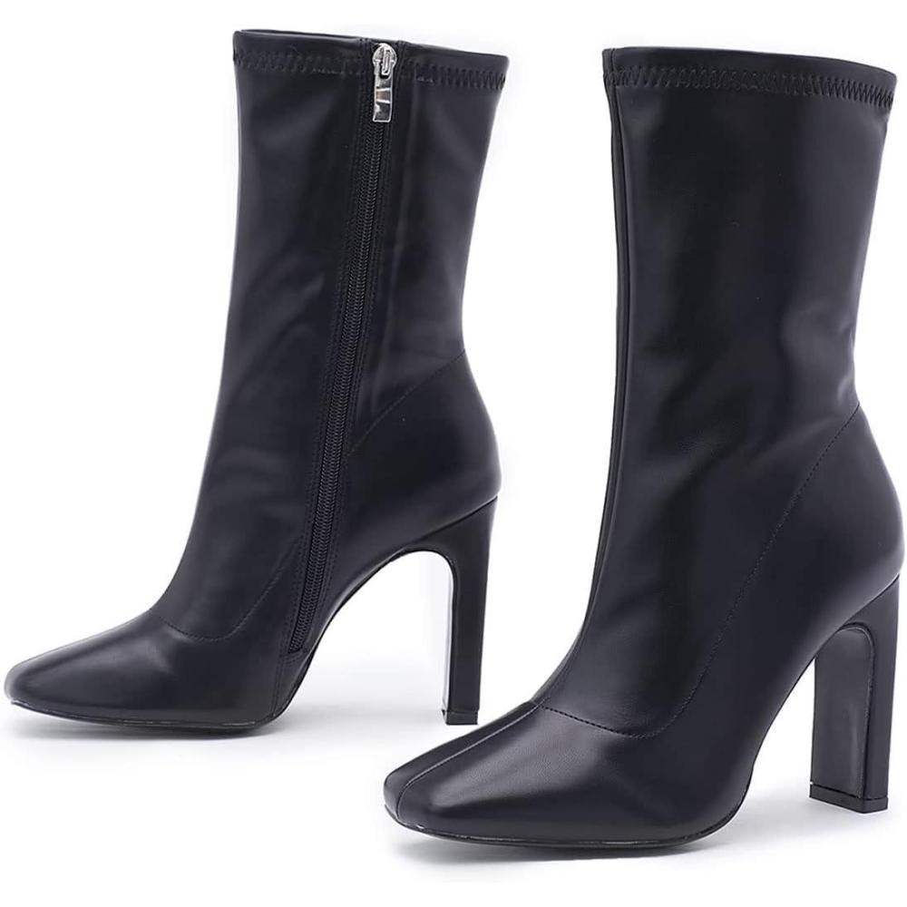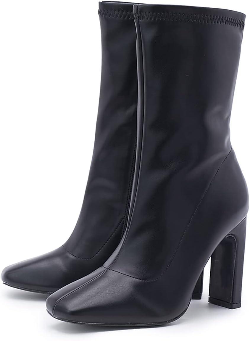 Womens Square Toe Chunky Block Heel Mid-calf Boots Side-Zip Short Ankle Booties